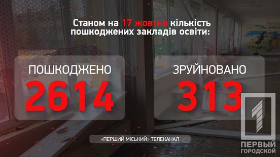 Между тем, российские военные постоянно бомбят и обстреливают объекты гражданской инфраструктуры, например, учебные заведения. С начала войны рашисты повредили 2 614 учебных заведений, из которых шесть на прошлой неделе. Еще 313 учреждений разрушены до основания и не подлежат восстановлению.
