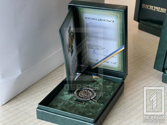 Это нагрудный знак «За защиту Криворожья». Им начальник Военной администрации Александр Вилкул отмечает тех, кто защищает Кривой Рог и участвовал в освобождении Херсона от оккупации.