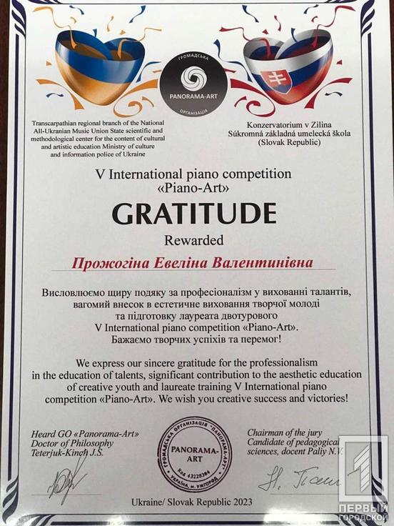 Четыре золотых медали получили юные пианисты из Кривого Рога на международном конкурсе в Словакии