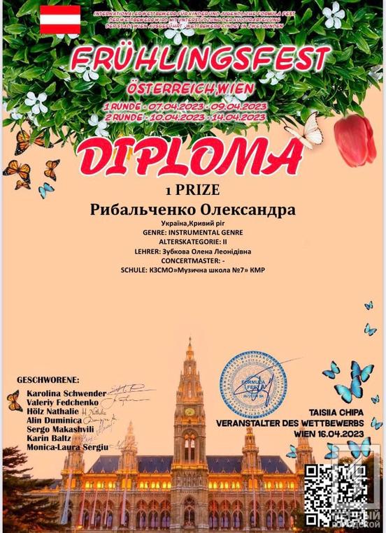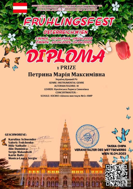 На міжнародному благодійному двотуровому конкурсі мистецтв «Формула успіху - Свято Весни - 2023» у Австріїї вихованці мистецьких шкіл отримали одразу п’ять призових місць у різних номінаціях.