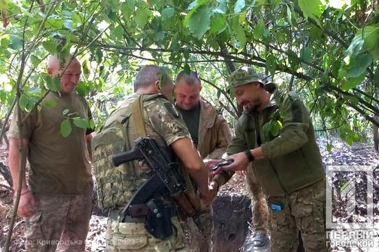 24 августа в районе выполнения боевых задач для защитников 129 Криворожской бригады ТРО устроили торжества по случаю празднования 32-й годовщины Независимости Украины. 99 воинам 3-го бата вручили "Нагрудный знак батальона территориальной обороны". Разработали его по собственной инициативе комбата во взаимодействии с ВТО Орден. Об этом сообщается в соцсетях Криворожской отдельной бригады территориальной обороны.