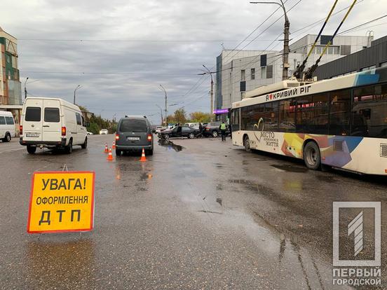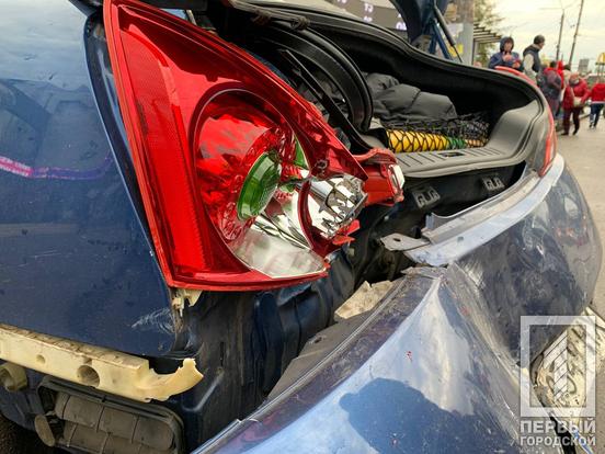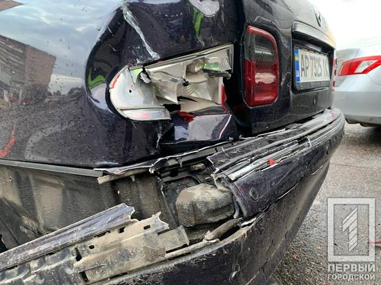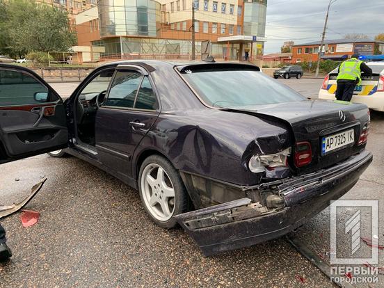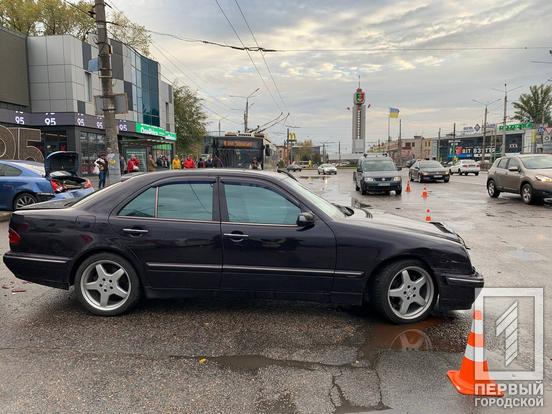 «Автомобильный боулинг»: в Кривом Роге при съезде с кольца 95-го квартала Mercedes зацепил Volkswagen Caddy, а затем влетел в припаркованные машины
