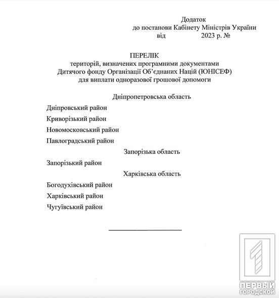 В частности, по 3600 гривен предусмотрено на взрослого, 6600 грн. на ребенка. Согласно перечню территорий, определенных программными документами Детского фонда Организации Объединенных Наций (ЮНИСЕФ), в нашем регионе речь идет о следующих районах:
