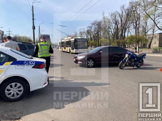 У второго водителя подозрение на перелом ноги: в Кривом Роге на проспекте Металлургов случилось ДТП со Skoda и мотоциклом Suzuki