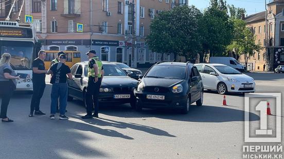 Маршрутка перекрыла обзор: в Кривом Роге на площади Александра Поля произошло ДТП с Geely и BMW