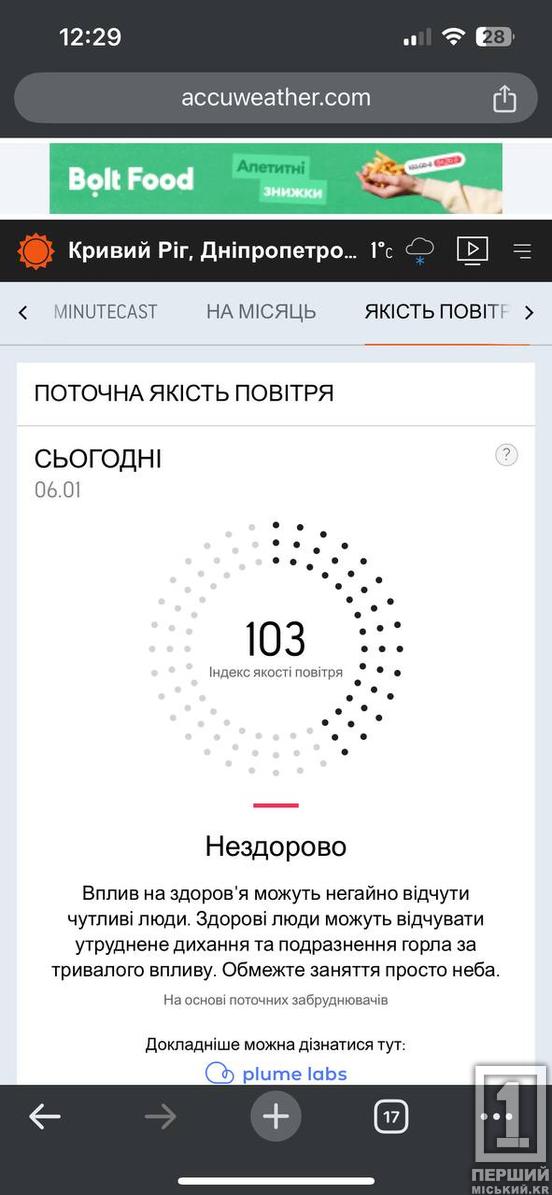 6 декабря мониторы зафиксировали существенное ухудшение качества воздуха в городе. Его индекс, по состоянию на сейчас, составляет 103 - это нездоровый уровень загрязнения. Первыми почувствовали изменения на себе чувствительные горожане.