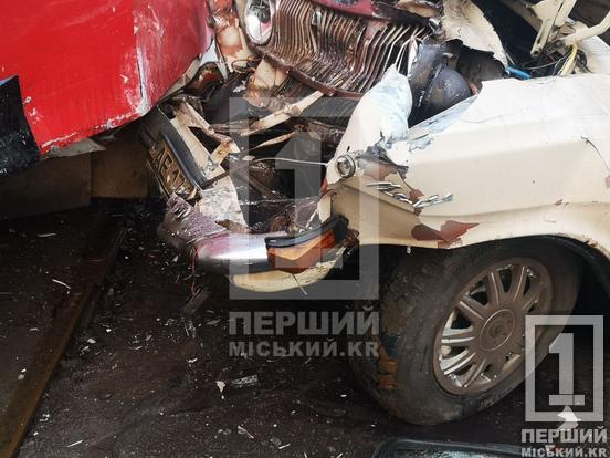 Пострадавшего вырезали из машины спасатели: в Металлургическом районе Кривого Рога столкнулись Волга и трамвай