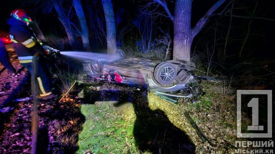 Кювет с жесткими последствиями: на Криворожье опрокинулся и загорелся Mitsubishi Galant