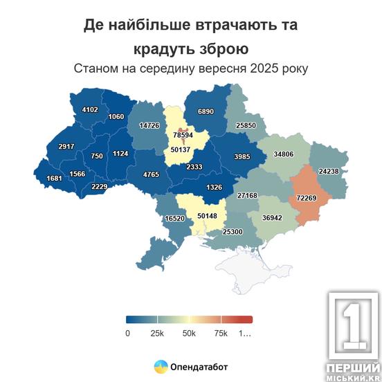 Днепропетровщина вошла в перечень регионов, где высокое число похищенного и потерянного оружия