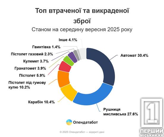 491+ тыс оружия было потеряно и похищено в Украине во время полномасштабной войны. Такие данные приводит «Опендатабот» со ссылкой на МВД.