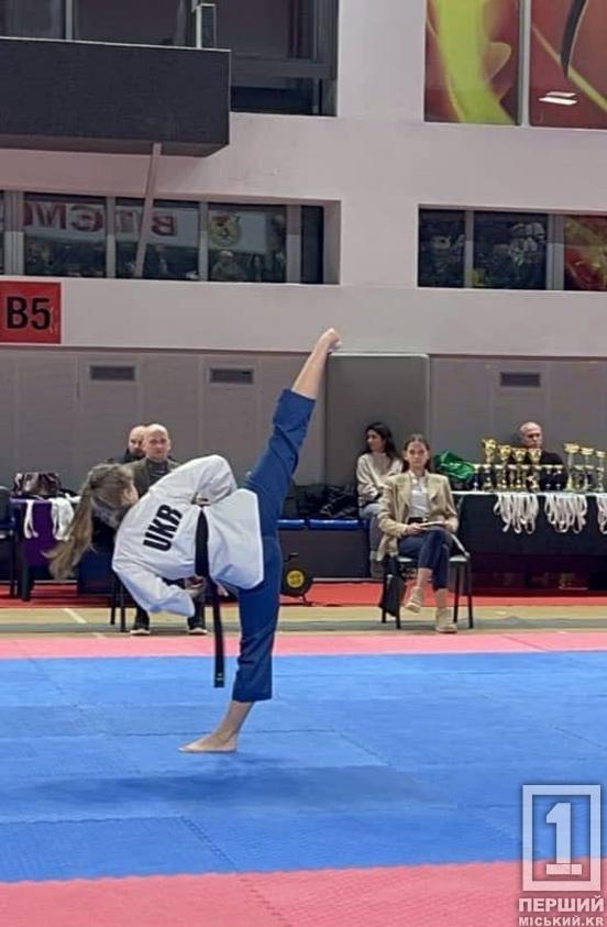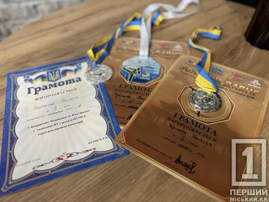 На чемпионате города Каменское она взяла золото в пумсе и серебро в кэруги. Весовая категория – 55 кг.
