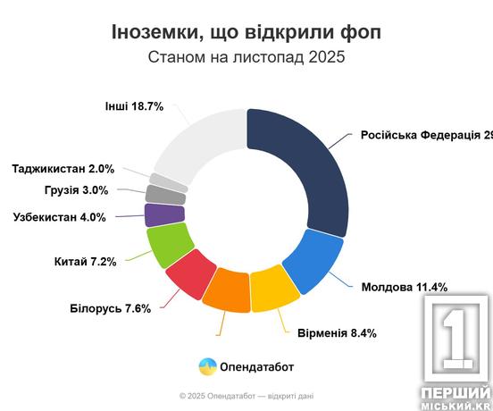«Стоит отметить, что иностранки также активно регистрируют ФЛП в Украине. Больше всего зарегистрировали гражданки России (175), Молдовы (68), Армении (50) и Азербайджана (49)», - добавили в «Опендатаботе».