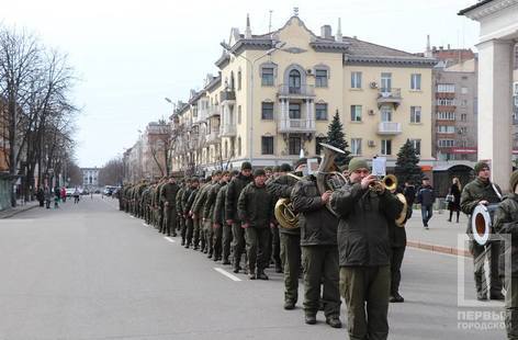 Этот день в Кривом Роге решили отметить праздничным маршем. 48 бойцов прошли от площади Освобождения к театру имени Шевченко по проспекту Почтовому. Аккомпанировал шествию настоящий духовой оркестр. Во главе колонны нацгвардейцы несли знамя своего подразделения.