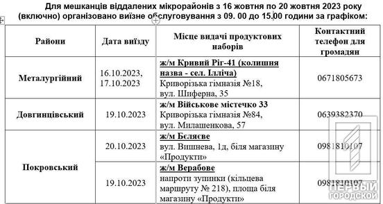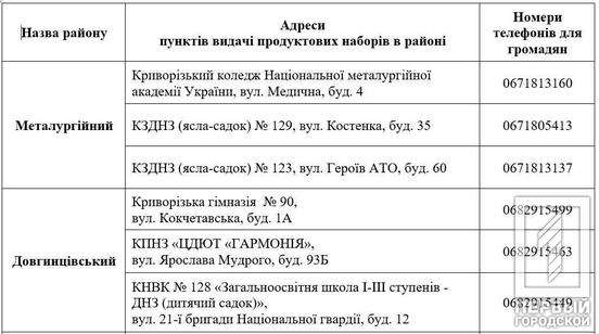 По вопросам работы пунктов выдачи продуктовых наборов, доставки по месту пребывания жители могут обратиться непосредственно в пункты выдачи продуктовых наборов по предоставленным выше контактным телефонам районных управлений труда и социальной защиты населения или Контакт-центра г. Кривого Рога по номеру 1520 (для операторов Киевстар) и 499-1520 (для других операторов) или на сайт.